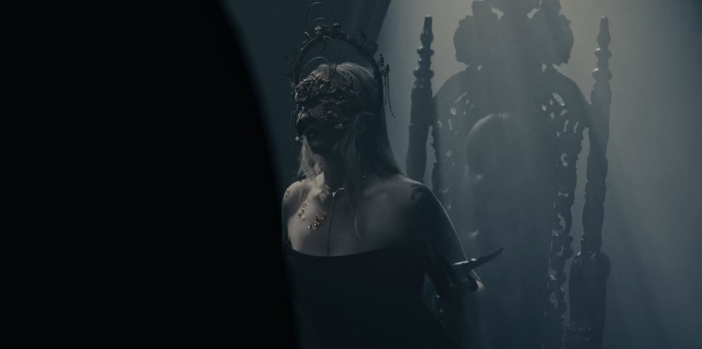‘THRONE OF WANT’ depicts the main character accepting the figure she encountered in the previous video, and seemingly morphing into the physical manifestation of whatever “Goddess”, deity, or entity the figure is.